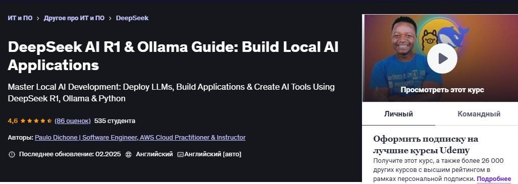 [Udemy] [Пауло Дюшон] [ENG] Руководство DeepSeek AI R1 и Ollama: создание локальных приложений ИИ (2025)
