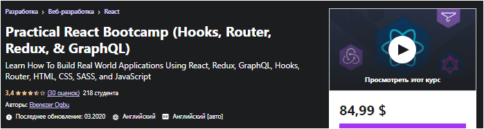 [Udemy] Практический React Bootcamp (Hooks, Router, Redux и GraphQL) (2020)