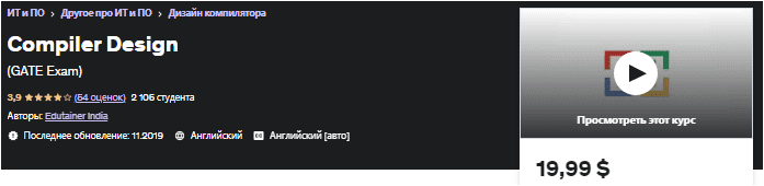 Курс поможет понять и решить все вопросы, связанные с экзаменом GATE. Компиляторы предоставляют вам теоретические и практические знания, необходимые для реализации языка программирования. Как только вы научитесь компиляторовать, вы в значительной степени узнаете внутренности многих языков программирования. Кроме того, вам станет легко судить о языке программирования по его основным функциям.