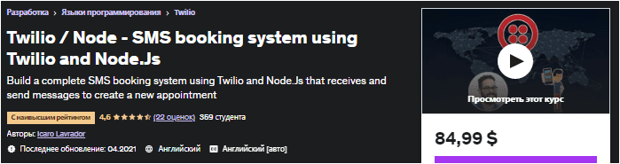 [Udemy] Twilio/Node - Система бронирования по SMS с Twilio и Node.Js (2021)