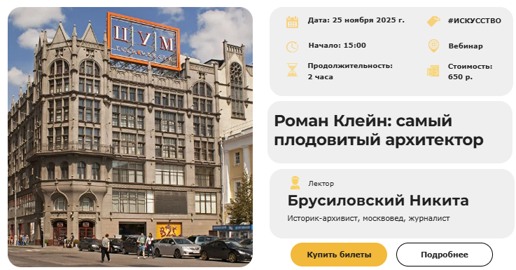 Приглашаем Вас на вебинар на тему: Роман Клейн: самый плодовитый архитектор. 25 ноября в 15:00