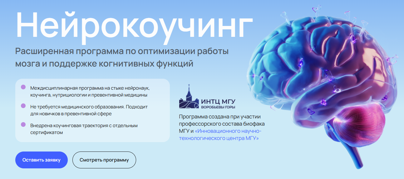 Программа направлена на подготовку специалистов, которые будут помогать людям улучшить процессы восприятия, запоминания и обработки информации с помощью инструментов превентивного управления здоровьем.