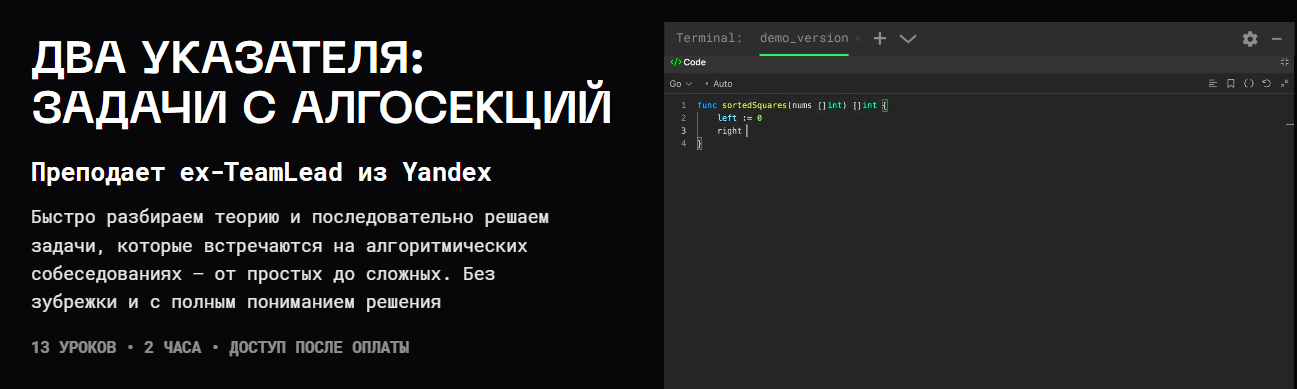 Интенсив научит решать задачи на метод 2 указателей
