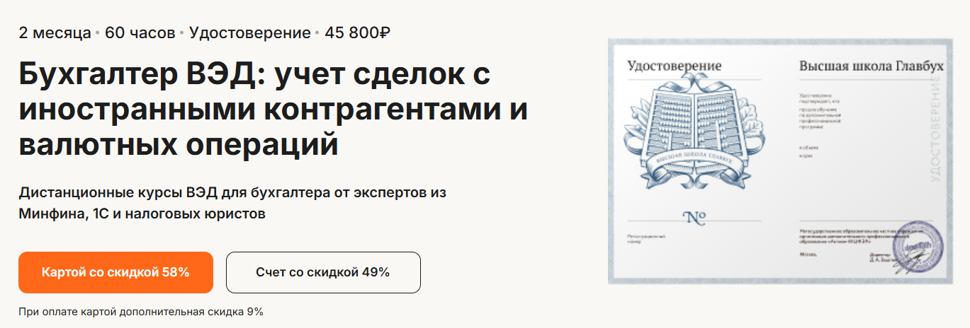 Дистанционные курсы ВЭД для бухгалтера от экспертов из Минфина, 1С и налоговых юристов