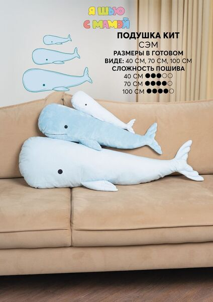 Название: Подушка-кит Сэм. Размеры 40, 70, 100см (2024)