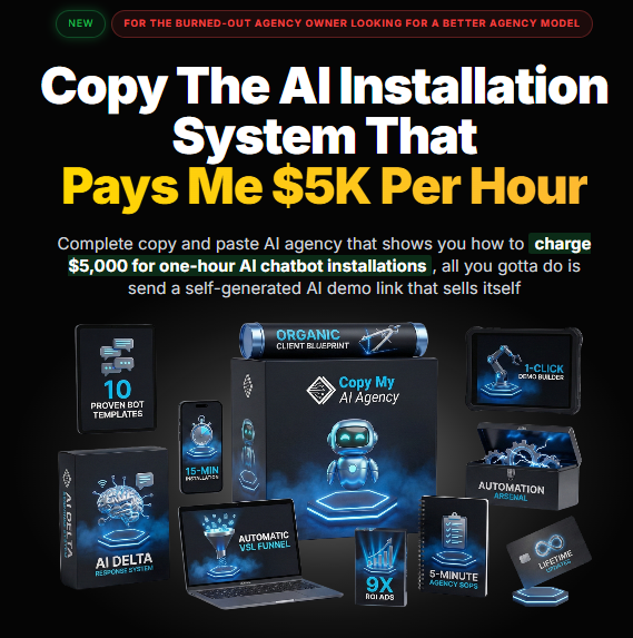 Clone my complete done-for-you agency with pre-built $5K AI systems, magic demo builders, and ROI calculators - charge $5K for one-hour installationswww.copymyaiagency.com