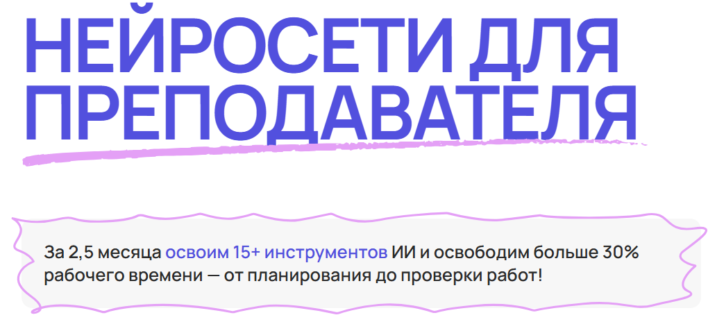 Этот курс создан для того, чтобы упростить вашу работу, освободить время и показать, как использовать возможности нейросетей в преподавании — с пользой, а не в ущерб качеству.