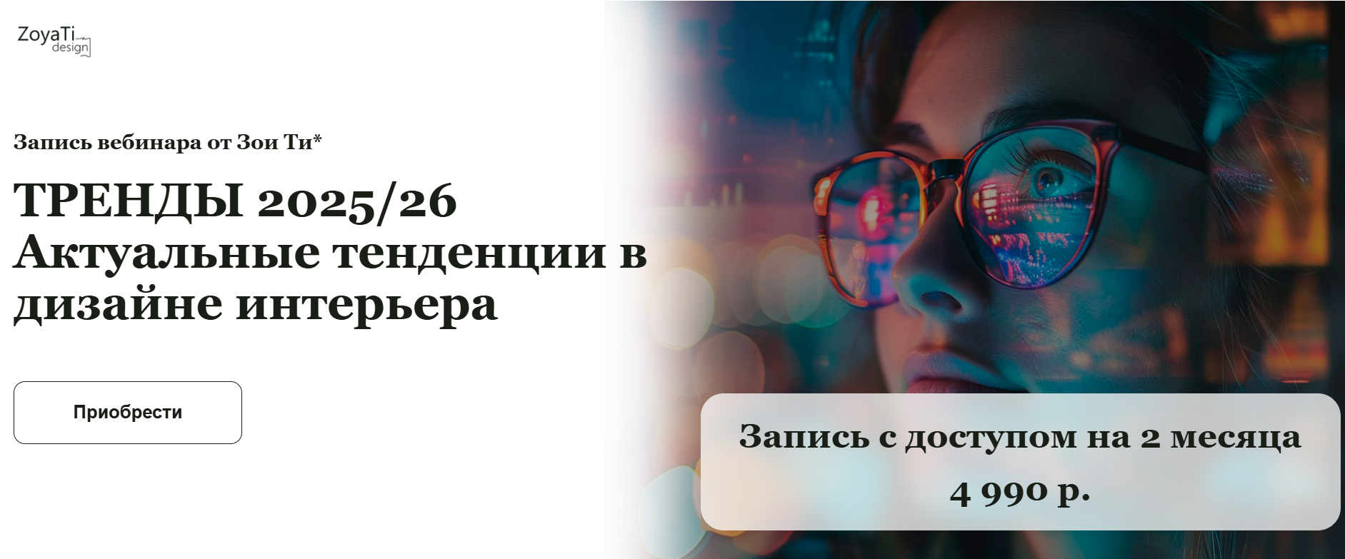 Большой ежегодный вебинар по трендам от Зои Ти с анализом потребительских настроений и предпочтений в сфере интерьерного и предметного дизайна.
