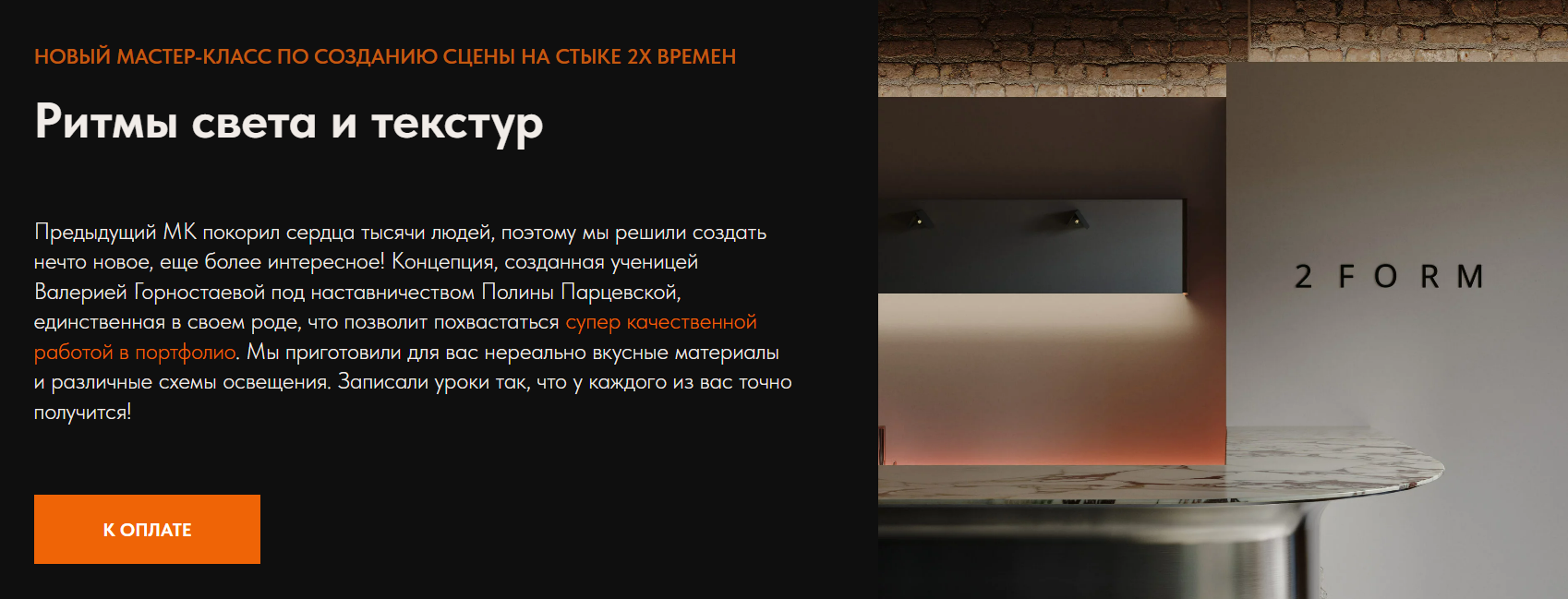 Предыдущий МК покорил сердца тысячи людей, поэтому мы решили создать нечто новое, еще более интересное! Концепция, созданная ученицей Валерией Горностаевой под наставничеством Полины Парцевской, единственная в своем роде, что позволит похвастаться супер качественной работой в портфолио. Мы приготовили для вас нереально вкусные материалы и различные схемы освещения. Записали уроки так, что у каждого из вас точно получится!