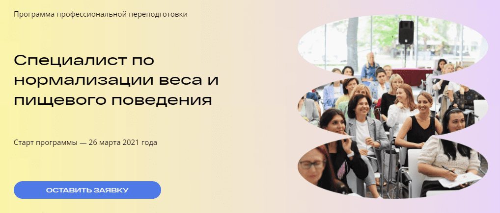 Хотите получить новую востребованную профессию и осознаете, что ниша работы с людьми с проблемами веса и пищевого поведения — перспективная и не переполненная в данный момент.