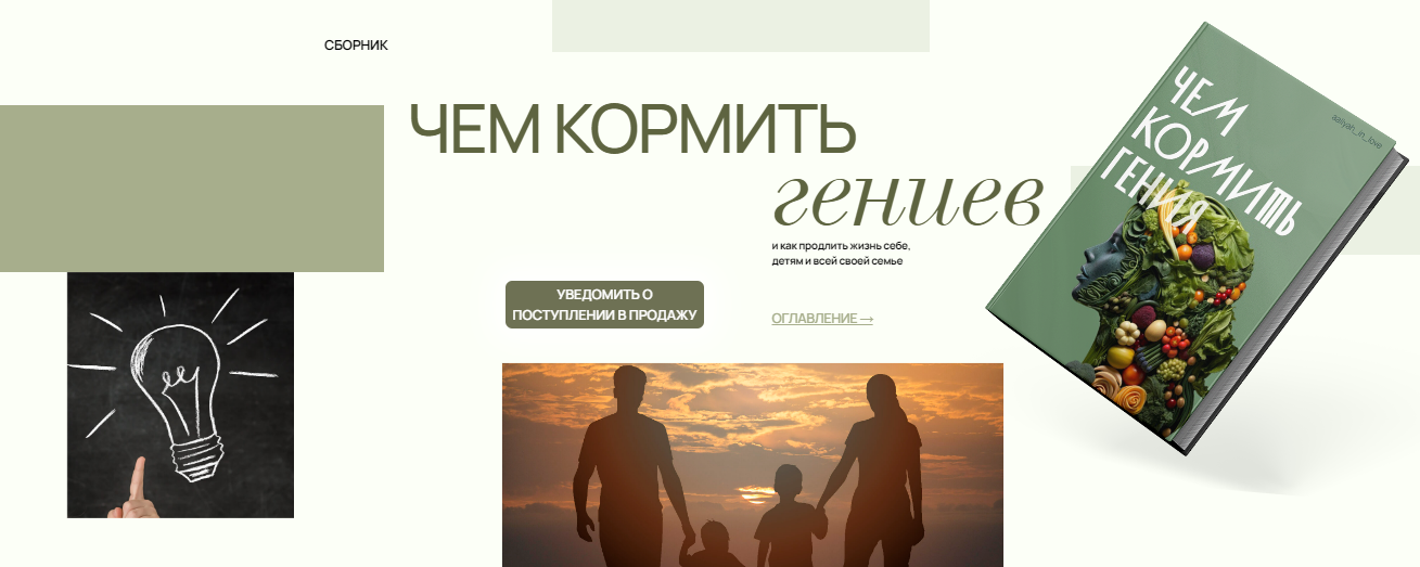 Этот сборник — не перечисление рецептов. Это целое пособие по тому, как готовить ту еду, которая каждым миллиграммом будет работать на ваше здоровье и подпитывать мозги всех членов вашей семьи. Чтобы все вы не принимали дурные решения по жизни, потому что голова плохо работает. А наоборот — генерировали гениальные идеи.
