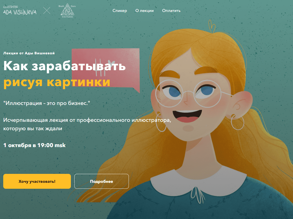Это не просто лекция или мастер-класс. Это нечто большее. Это концентрат опыта Ады Вишневой, профессионального иллюстратора, который собрал весь свой опыт и сжал его до 3 фундаментальных блока для максимально эффективной передачи опыта: история пути и развития, личные фишки, ошибки.