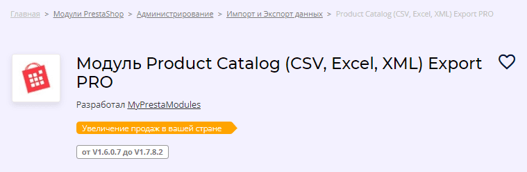 Модуль Product Catalog (CSV, Excel, XML) Export PRO - удобный модуль, специально разработанный для выполнения экспортных операций с продуктами PrestaShop.
