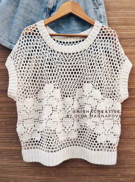 Топ можно связать из любой пряжи с летним составом толщиной 330-350м/100 грамм