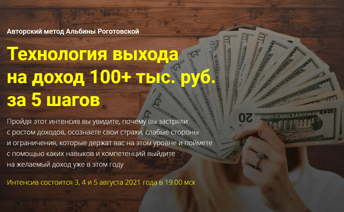 [Альбина Роготовская] Технология выхода на доход 100+ тыс. руб. за 5 шагов (2021)