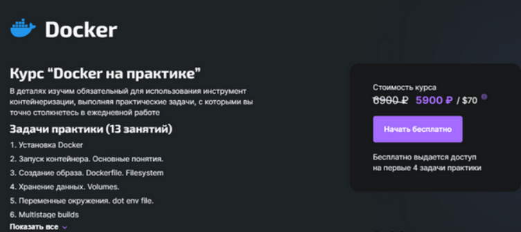 Этот курс позволит вам стать компетентными и уверенными в работе с Docker, освоить все его ключевые функции и функциональные возможности.