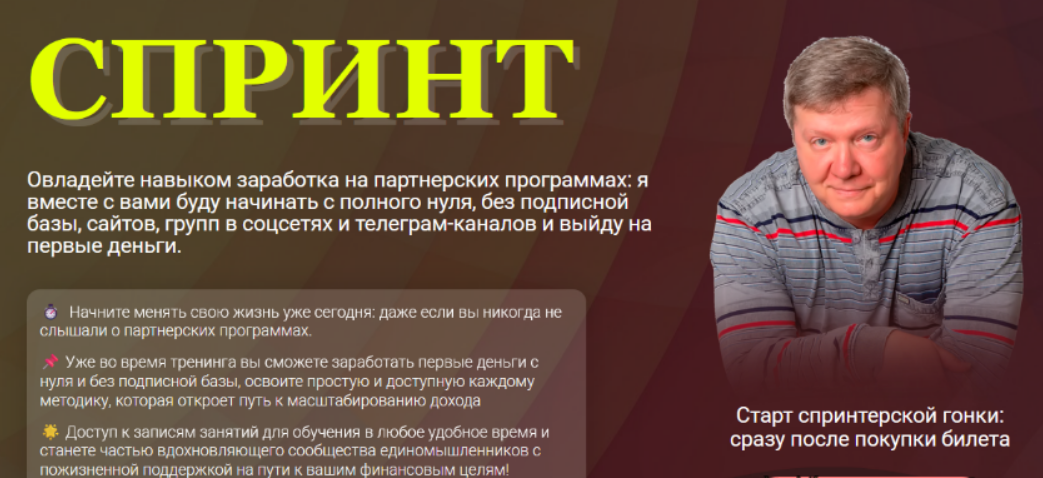 Слив курса Спринт - спринтерская гонка за деньгами в партнёрках [Александр Бакин]