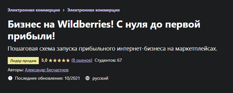 [Александр Бесчастнов] [Udemy] Бизнес на Wildberries! С нуля до первой прибыли! (2021)