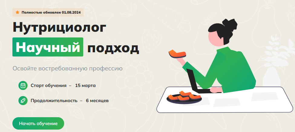 Профессиональный курс: "Нутрициолог. Научный подход" Станьте специалистом в области здорового питания. Курс повышения квалификации по нутрициологии. Выпускные документы.nutritionist.bodycoach.pro