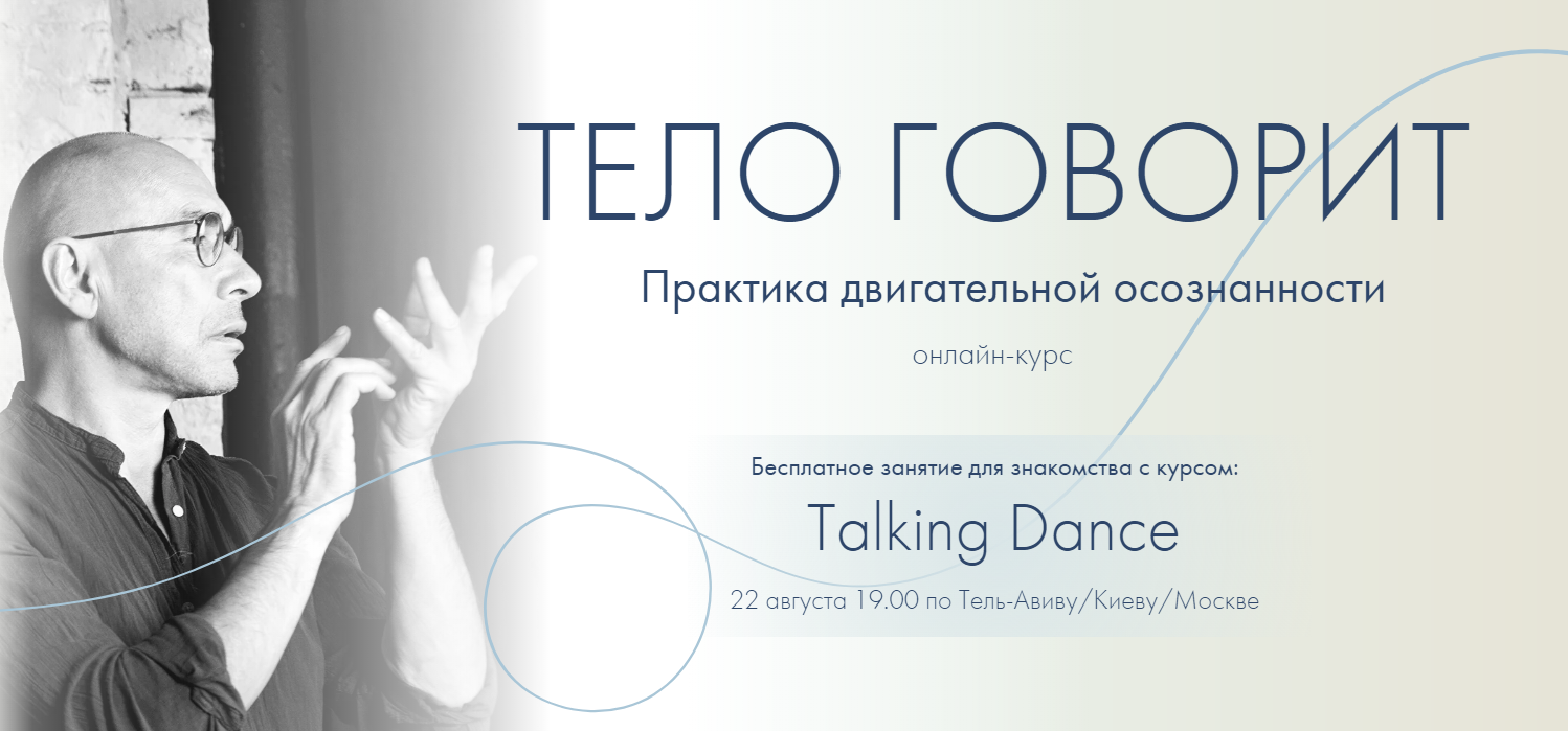 На курсе "Тело говорит" мы будем знакомиться с развернутым вариантом практики американского импровизатора Ричарда Булла Talking Dance. Нашей целью будет развитие телесной и двигательной осознанности.