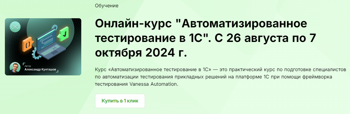Онлайн-курс "Автоматизированное тестирование в 1С". С 26 августа по 7 октября 2024 г.