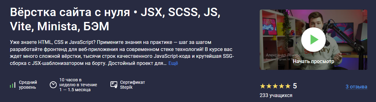 Слив курса Вёрстка сайта с нуля: JSX, SCSS, JS, Vite, Minista, БЭМ [stepik] [Александр Ламков]