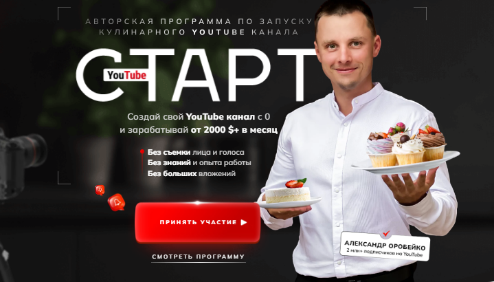 YouTube старт. Авторская программа по запуску кулинарного YouTube канала [Тариф Start] [Александр Оробейко]