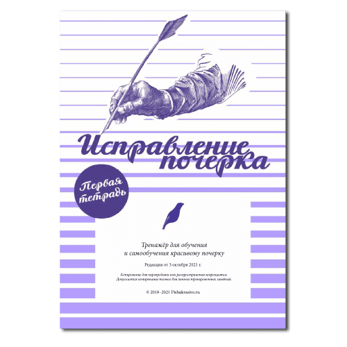 В октябре 2021 года вышла новая редакция тренажера почерка «Исправление почерка. Первая тетрадь». Вот какие новые материалы ждут владельцев трнажера, который теперь публикуется с сиреневой обложкой (чтобы визуально сразу отличить его от предыдущего).