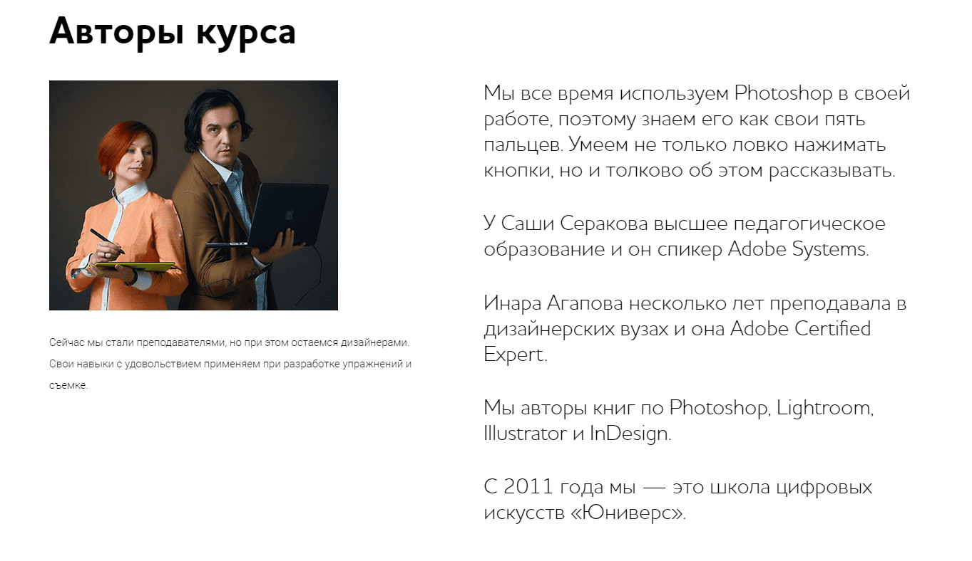 Яркость. Точки черного и белого. Работа с контрастом. Корректирующие слои. Логика управления цветом. Баланс белого. Изменение насыщенности. Выборочное управление цветом. Перекрашивание. Camera Raw фильтр. Эффекты: обесцвечивание, тонирование, акцент цветом. Резкость и подавление шума. Имитация Tilt-shift. Размытие фона и глубина резкости.