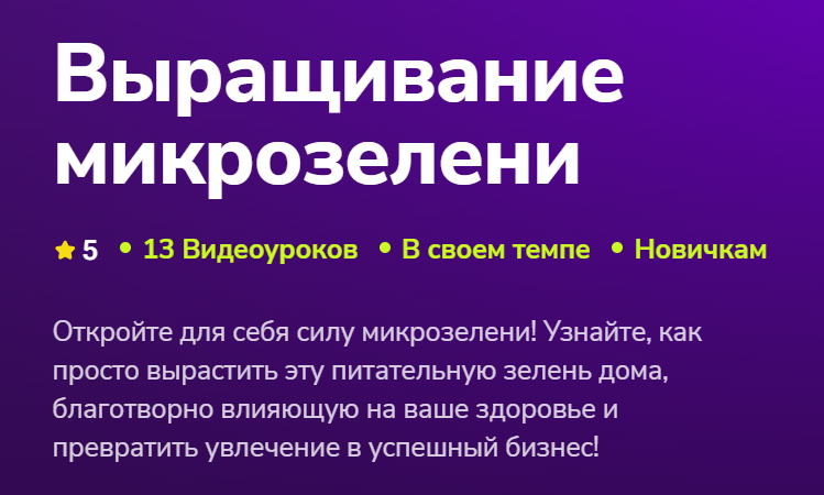 Откройте для себя силу микрозелени! Узнайте, как просто вырастить эту питательную зелень дома, благотворно влияющую на ваше здоровье и превратить увлечение в успешный бизнес! Курс длительностью 1 месяц, стоимость первой недели 99₽.tutorplace.ru
