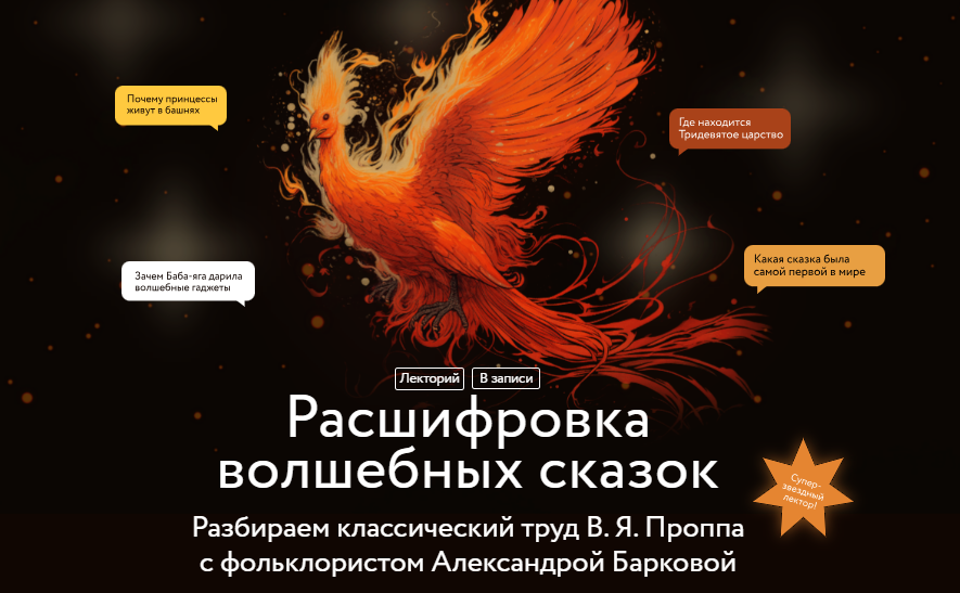 Имена ученых В. Я. Проппа и А. Л. Барковой, равно как и темы лектория, говорят сами за себя. Такие лекции не прогуливают
