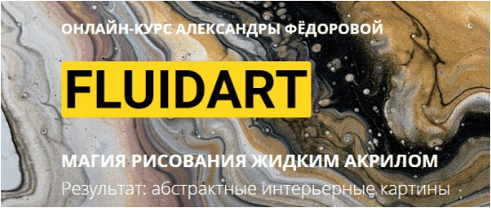 Практический раздел курса FLUIDART содержит мастер-классы (18 уроков) по заливке картин акрилом разными способами.