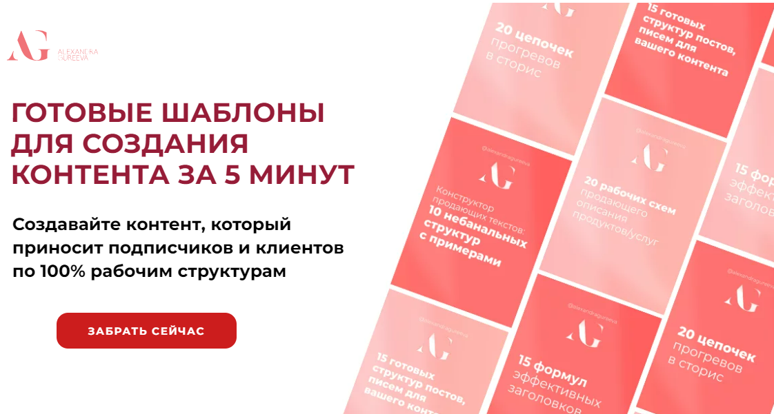 [Александра Гуреева] Готовые шаблоны для создания контента за 5 минут. Тариф Базовый (2024)