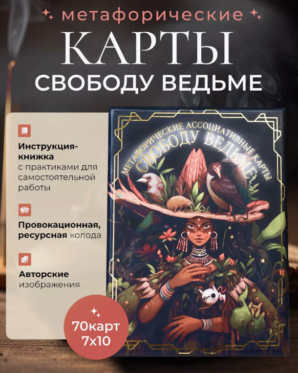Метафорические карты "Свободу ведьме" - это метафорические ассоциативные карты, которые воплощают жажду освобождения и непокорности, символизированную образом ведьмы. Хотите освободить свою внутреннюю силу и раскрыть свой потенциал? Мечтаете ярко себя проявлять и узнать себя настоящую? Тогда метафорические ресурсные карты "Свободу ведьме" - ваш лучший выбор! Наши карты не похожи на другие. Они созданы с использованием авторских уникальных изображений, которые пробуждают в вас магическую энергию и помогают раскрыть ваш потенциал. Каждая карта - это окно в ваше внутреннее "я", позволяющее вам получить ресурсное состояние и обрести новые понимания.