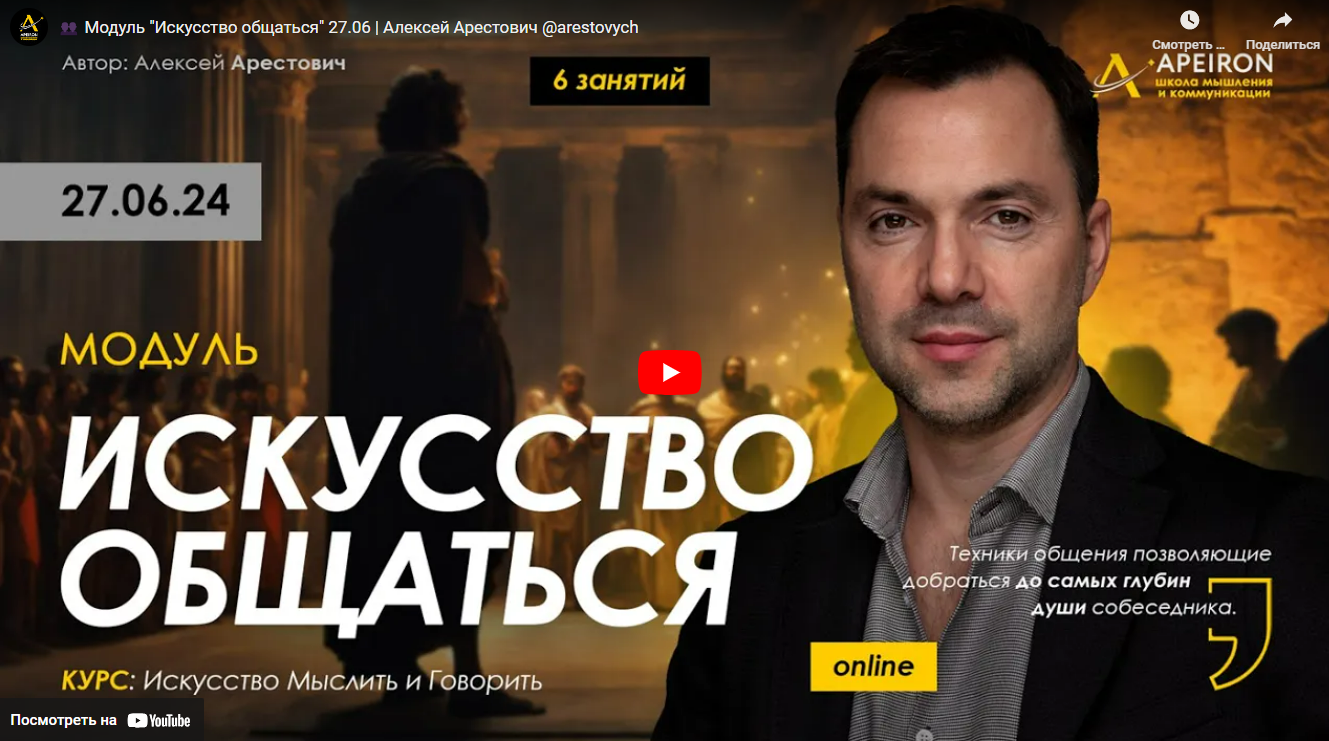 Искусство общаться. Занятие 1 (2024) [Apeiron] [Алексей Арестович]