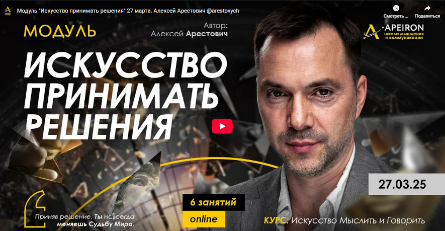 Слив курса Искусство принимать решения. Занятие 2 (2025) [Apeiron] [Алексей Арестович]
