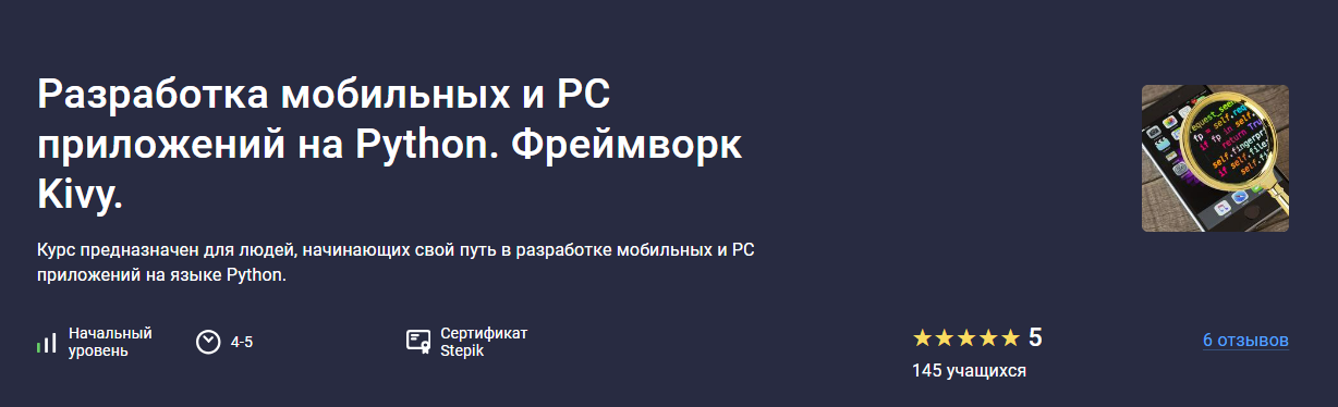 Особенностью курса является то, что он подходит как для начинающих, так и для тех, кто уже имеет опыт в программировании на языке Python. Кроме того, курс предоставляет возможность создания приложений как для мобильных устройств, так и для ПК.