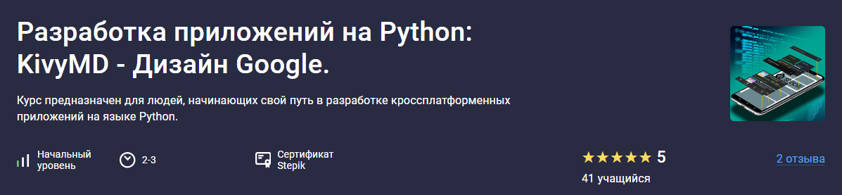 Курс по разработка приложений на Python в стеле Google Material Design предназначен для тех,
