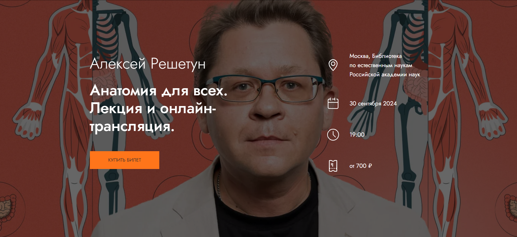 Алексей Решетун. Анатомия для всех. Лекция и онлайн-трансляция.
