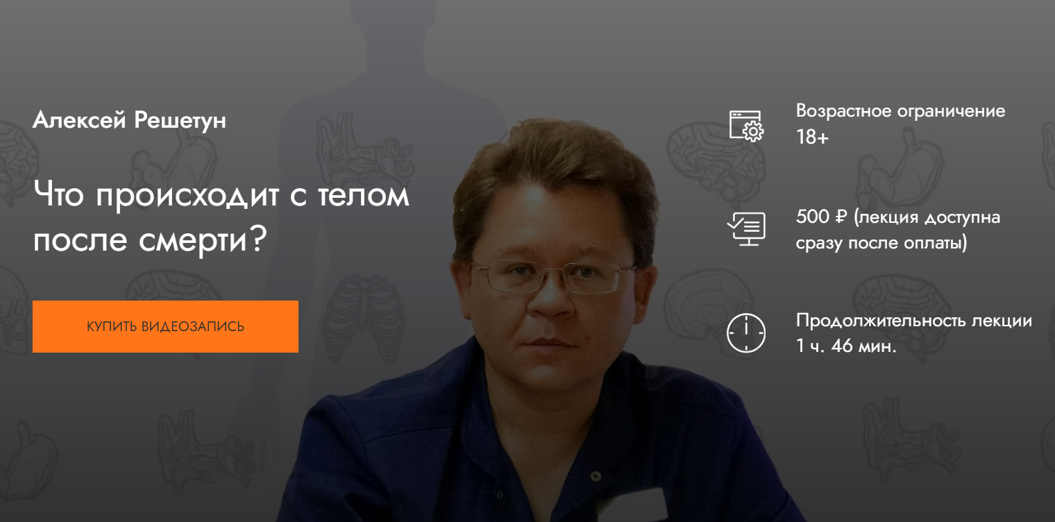 Купить ➔ Подарить ➔ Видеолекцию Алексея Решетуна: Что происходит с телом после смерти? Цена 500₽ Доступ моментальный.mediomodo.ru