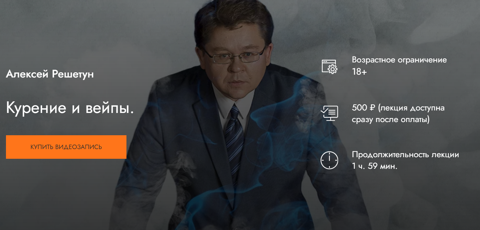 Купить ➔ Подарить ➔ Видеолекцию Алексея Решетуна: Курение и вейпы. Цена 500₽ Доступ моментальный.mediomodo.ru