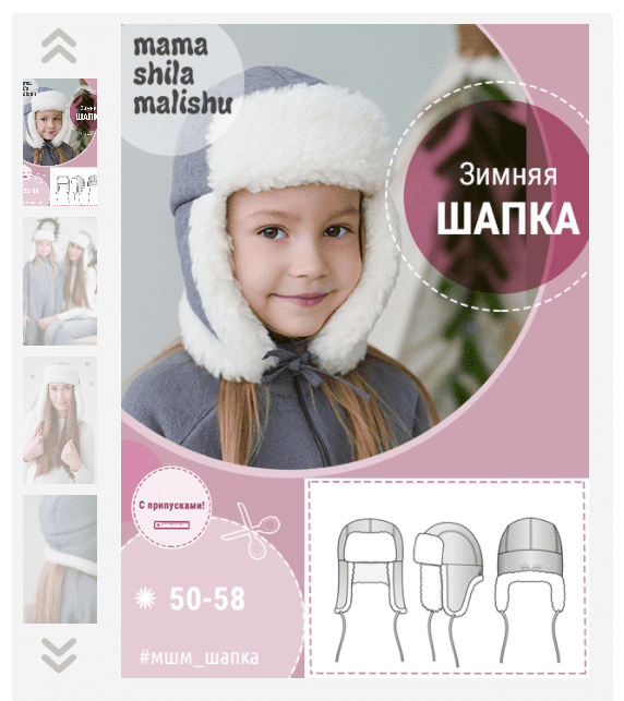 [Алина Шаймуратова] [Мама шила малышу] [Шитьё] Зимняя шапка. Размеры 50-58 (2022)