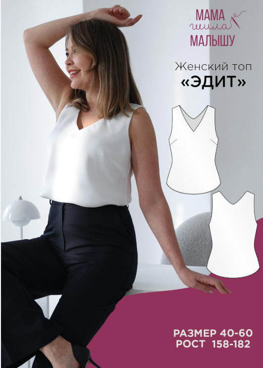 [Алина Шаймуратова] [Мама шила малышу] Женский топ Эдит. Размер: 40-52. Рост: 164 (2025)