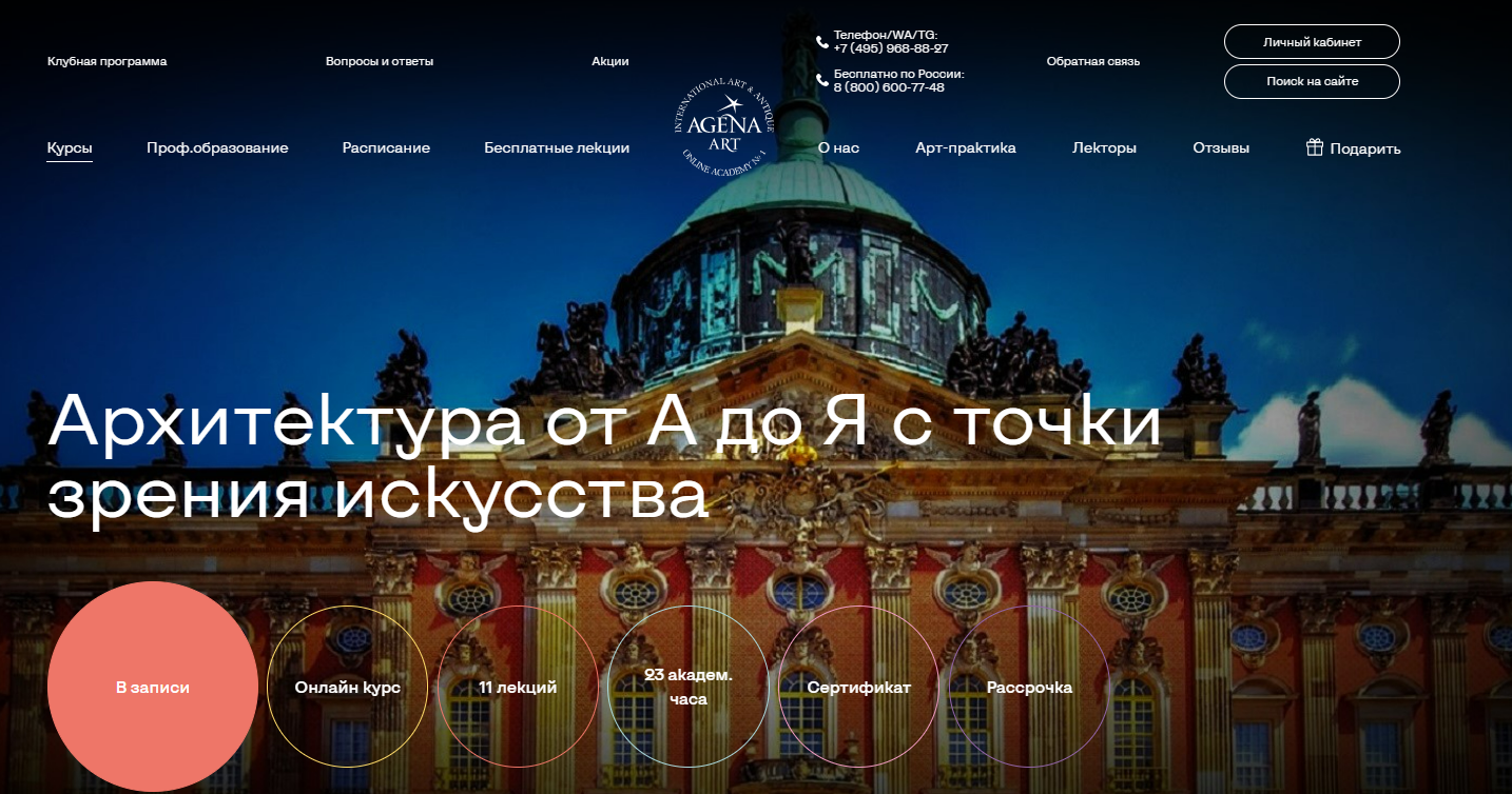 Архитектура от А до Я с точки зрения искусства - Друзья, отличная новость! Вы просили - мы сделали! Полный курс о художественном языке АРХИТЕКТУРЫ. Курс составлен по принципу объяснения основных составляющих, из которых складывается архитектурный образ. Наш лектор - историк архитектуры, кандидат...agena-art.ru