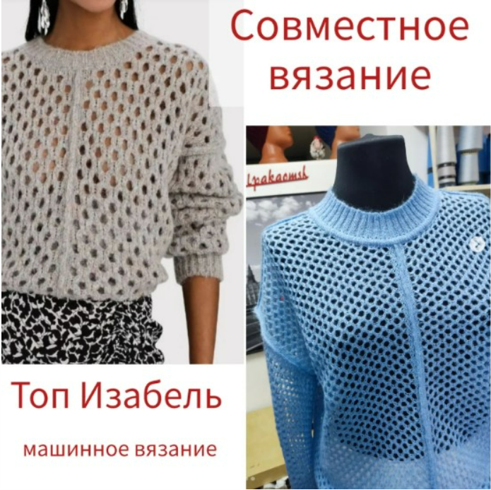 Совместник по вязанию на машине ажурного джемпера Изабель (по Изабель Марант). Листайте карусель.