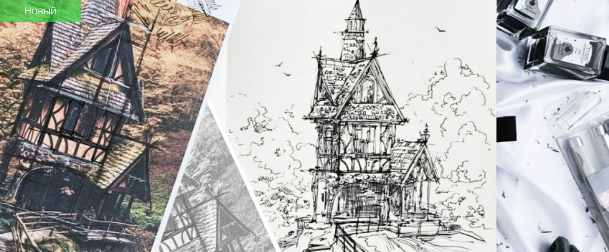 С помощью чернографитных карандашей и ручек мы научимся передавать текстуру лесной растительности и реалистичные детали здания.