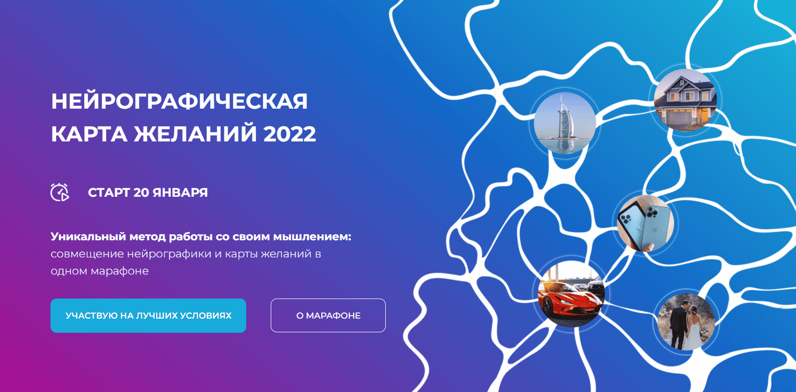 Марафон стартует 20 января — чтобы вы успели разобраться во всех тонкостях подготовки нейрографической карты желаний и подготовить всё необходимое для ее создания.