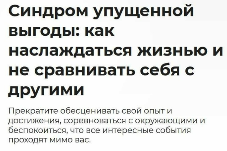 Прекратите обесценивать свой опыт и достижения, соревноваться с окружающими и беспокоиться, что все интересные события проходят мимо вас.