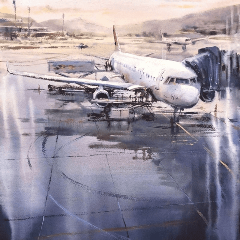 Скачать:За окном аэропорта. Рисование акварелью