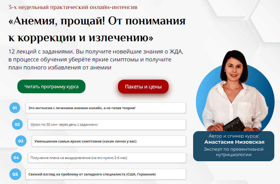 Это интенсив с лечением анемии онлайн, а не голая теория!